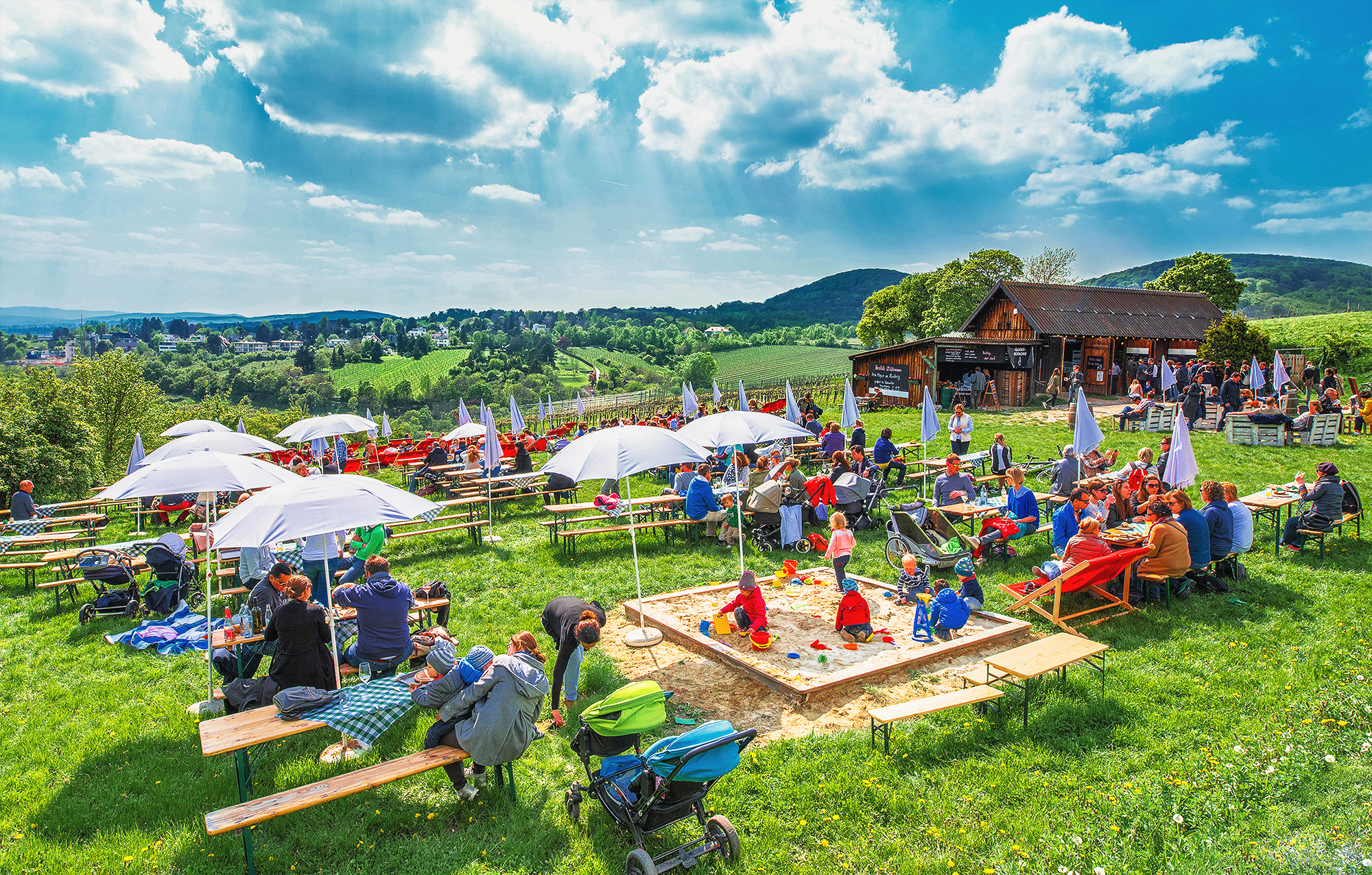 Genieße an einem der schönsten Plätze Wiens unseren wundervollen Ausblick vom Nussberg sowie unsere vielfach prämierten Weine – begleitet von den besten, regionalen Schmankerln.